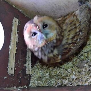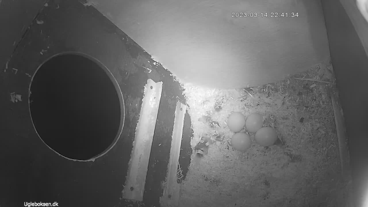 Det blev d. 25. februar 2024 uglen flyttede ind igen. Sidste år flyttede hun ind d. 27. februar og lagde det første æg 7. marts. Forrige år var det 4. marts hun flyttede ind og 11. marts hun lagde første æg. Om lidt over en uge tænker jeg hun lægger det første æg. Hun vil stadig bruge natten på at spise og fange mus og småfugle.