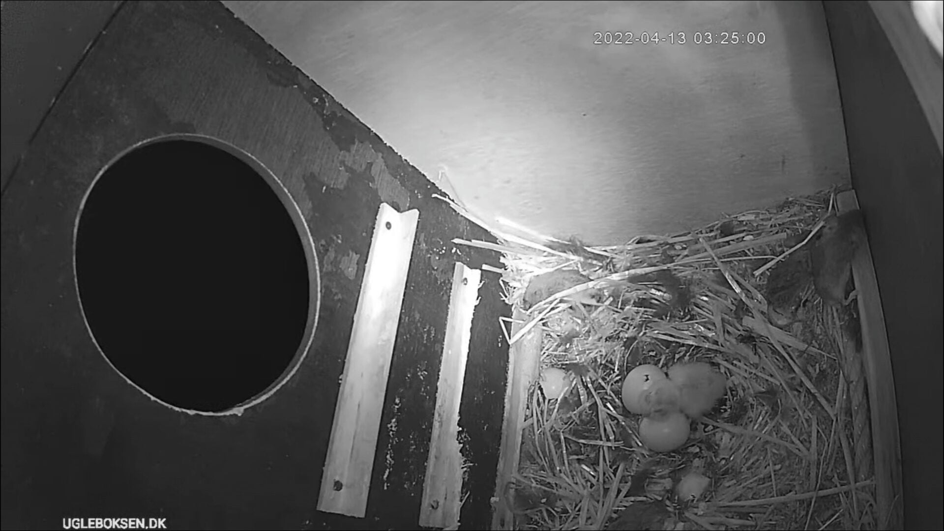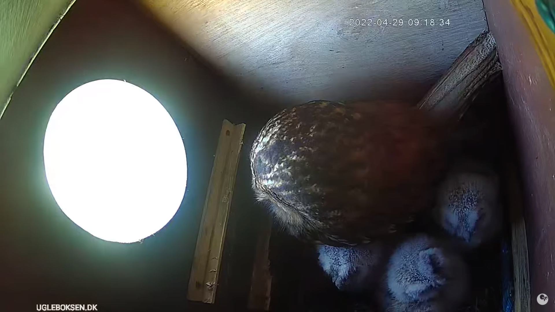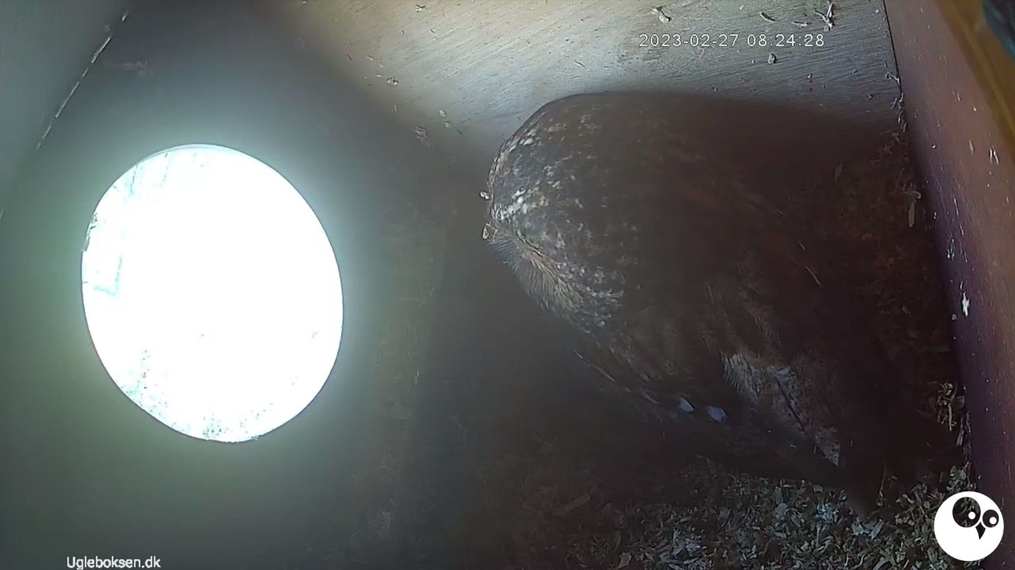 I de sidste uger har der været flere natlige besøg fra uglerne. Her til morgen kan vi se at uglemor nu har indfundet sig og forhåbentlig gør klar til at lægge æg igen i år. Husk at du kan følge med døgnet rundt på youtube og twitch