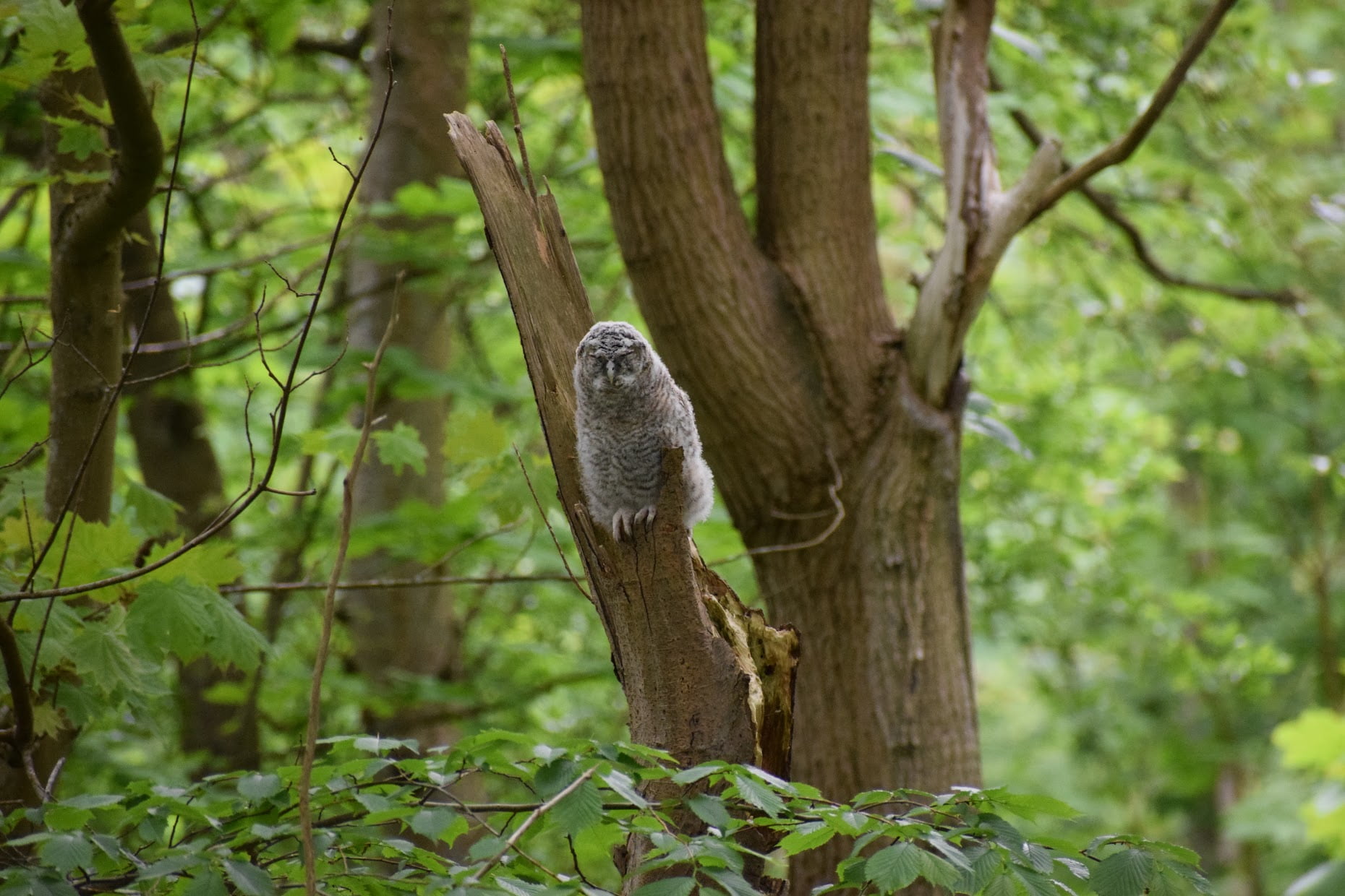 Alle ungerne har forladt uglekassen og fundet hen i en nærliggende skov. Her sidder de i nærheden af uglemor og venter på at blive fodret. Der går et stykke tid endnu inden de er flyveklar og uglemor sender dem væk.